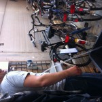 - Many folks in the bike shop laughed about how much it looked as though Tom was peeing into this bucket. Ostensibly, he was rinsing some used tires to be upcycled.